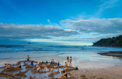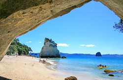 Head south along the Hibiscus Coast and through New Zealand's largest city on State Highway 1. Once you leave the Auckland City boundaries the landscape changes to rolling lush farmland. The fertile Hauraki Plains are one of New Zealand's largest dairy producing regions. The Thames Estuary is a haven for wildlife in particular shore birds and a short detour to Miranda (well sign posted) is worthwhile to see the large flocks of godwits and oyster catchers. Arriving into the old gold town of Thames you continue straight over the Coromandel Ranges on highway 25A and will be delivered to the glorious east coast and the township of Tairua in around 45 minutes. Continue a little further north to Hahei, Cathedral Cove and Hot Water Beach.