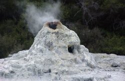 Orakei Korako is situated on the Waikato River at Lake Ohakuri, which is a Hydro-Electric power plant. The name Orakei Korako can be interpreted as 'Place of Adorning'. Maori women used the pool to bath and beautify themselves for ceremonies. The Silica Terraces that form the base of Orakei-Korako Geyserland and Thermal Park are believed to be the largest of its kind since the destruction of the famous Pink and White Terraces in 1886 on the edge of Lake Rotomahana beneath Mount Tarawera. At present, there are up to 23 active natural geysers that play freely throughout the area. One geothermal consultant stated that Orakei Korako has the greatest number of active geysers of any geothermal field in New Zealand, with the most variable and most interesting changes. There is a vast number of boiling hot springs to view at Orakei Korako as well as mud pools and there are extensive bush walks to enjoy through areas of native flora and fauna. The highlight for many visitors on the walk through the valley is the thermal Ruatapu Cave (sacred hole). The cave extends 120 ft down to a hot pool at the bottom named 'Waiwhakaata', which means 'pool of mirrors'.